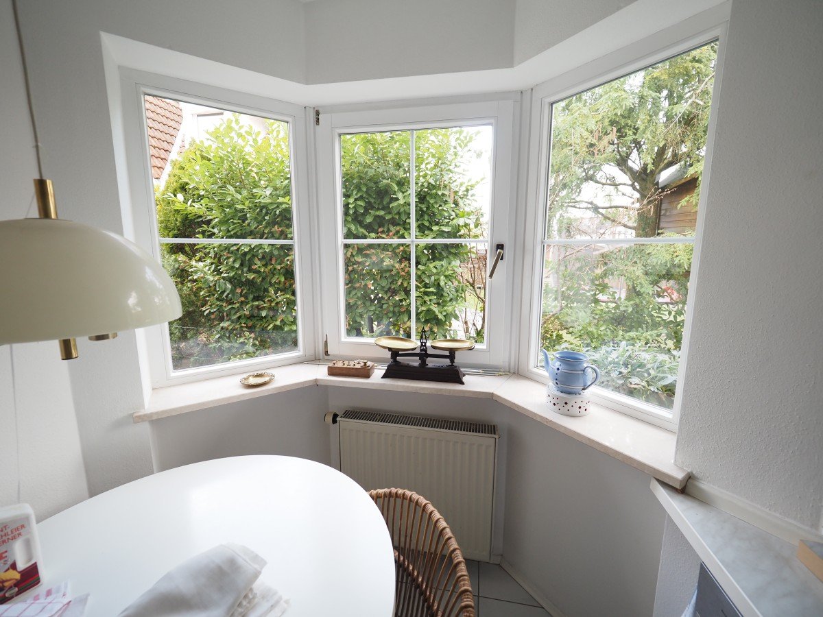 Die gemütliche Küche ist bereits mit einer Einbauküche ausgestattet und bietet ausreichend Platz zum Kochen und Verweilen. Ergänzt wird das Erdgeschoss durch ein praktisches Gäste-WC.