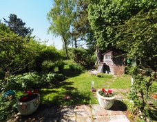 Hier ist Erholung garantiert – ob auf der sonnigen Terrasse oder unter den alten Bäumen. Eine Oase der Ruhe mit viel Privatsphäre und Raum für kreative Gartengestaltung.