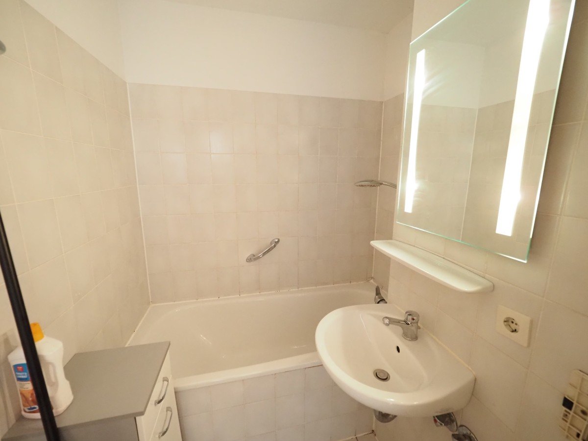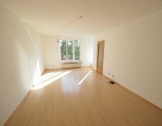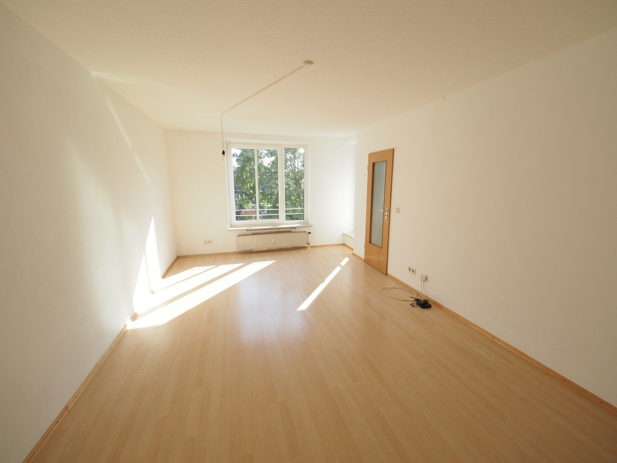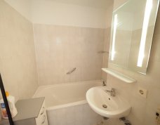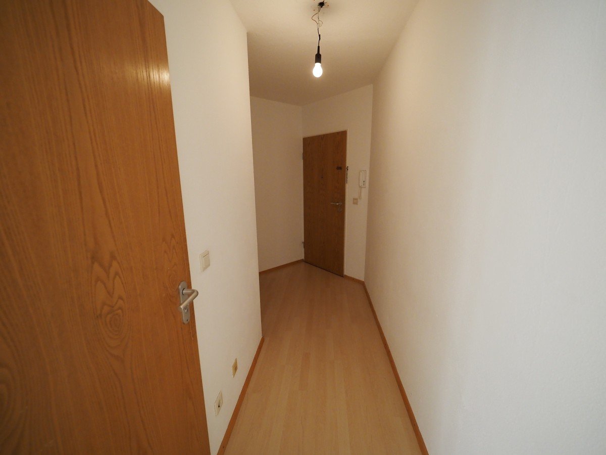 Das Schöne an der Wohnung ist, dass der Balkon vom Wohnzimmer und vom Schlafzimmer aus begehbar ist. Die Ausstattung ist gut. Laminatboden im Flur, Wohnzimmer und Schlafzimmer. Pflegeleichter PVC-Boden in der Küche.