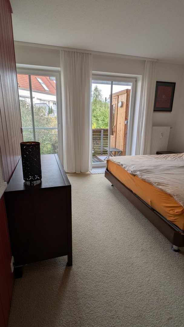 Zwei Schlafzimmer, eines davon mit Zugang zum Balkon und Sauna
