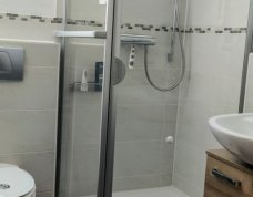 Zweites Badezimmer mit Dusche, Waschbecken und WC