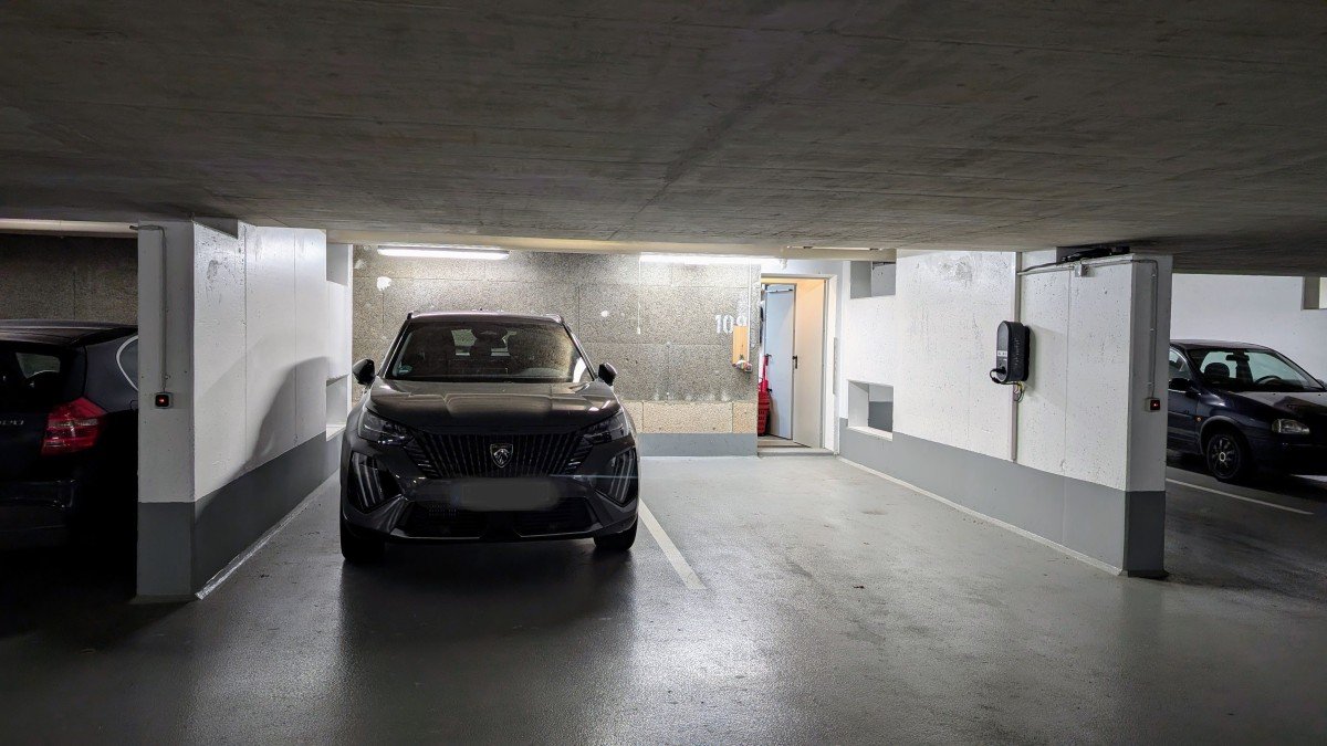 Zwei Tiefgaragenstellplätze, einer mit 11 kW Wallbox, direkt vor dem Kellereingang
