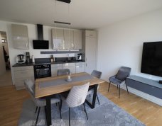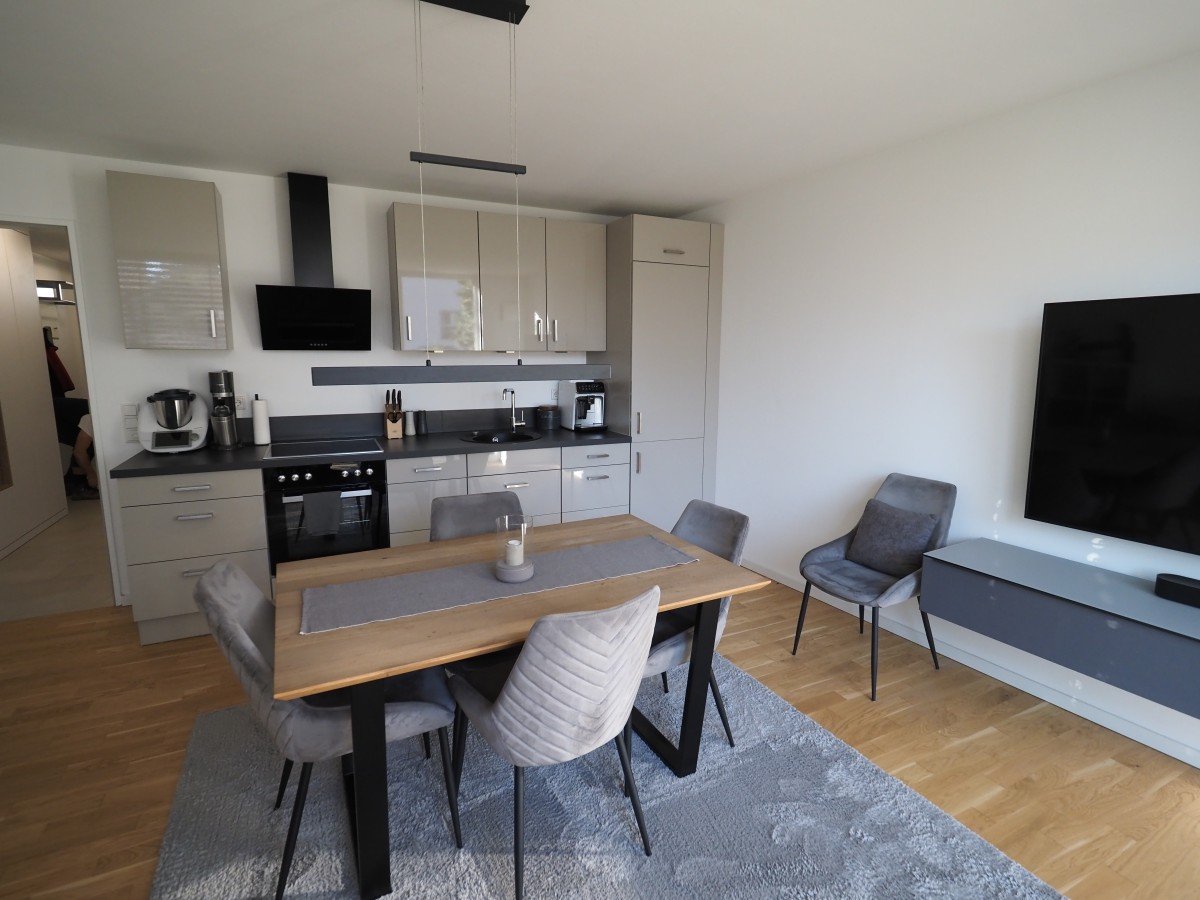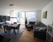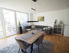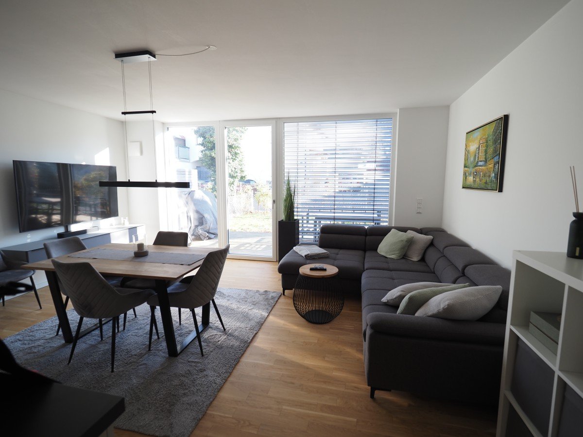 Bereits beim Betreten der Wohnung spürt man die hochwertige Ausstattung und das stilvolle Ambiente. Der offene und helle Wohnbereich bietet viel Platz zum Leben und Wohlfühlen. Große Fensterflächen sorgen für eine freundliche Atmosphäre und verbinden den Wohnraum harmonisch mit dem Garten.