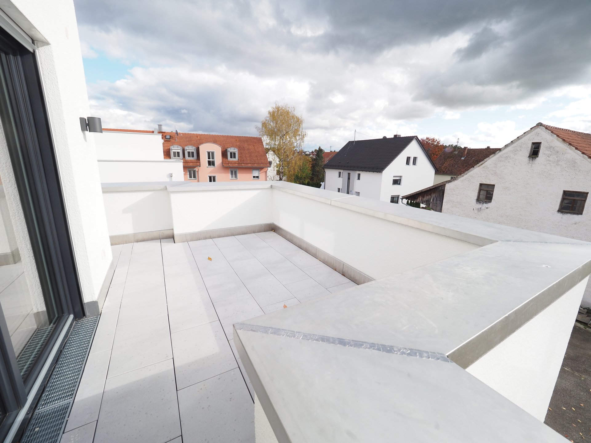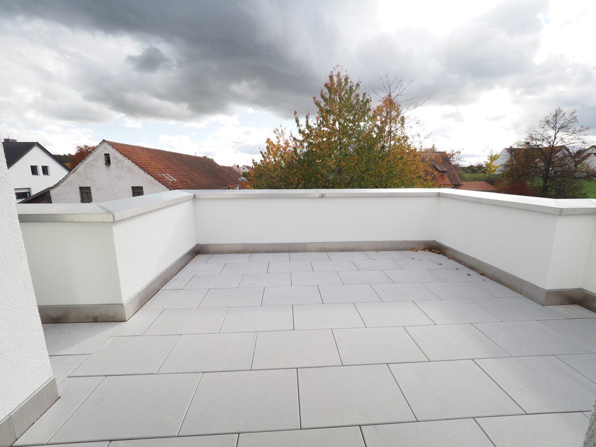 Ein architektonisches Highlight bildet die großzügige, umlaufende Dachterrasse, die die gesamte Wohnung umschließt. Sie bietet einen einzigartigen Rückzugsort unter freiem Himmel – ideal für entspannte Stunden, gesellige Abende oder den ersten Kaffee mit Blick in die Natur.