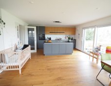Die Wohnung liegt im 1. Obergeschoss und bietet eine großzügige Wohnfläche von ca. 110 m². Dank der durchdachten Raumaufteilung, der bodentiefen Fenster und der hochwertigen Materialien entsteht ein offenes, lichtdurchflutetes Wohnambiente mit hohem Wohlfühlfaktor.